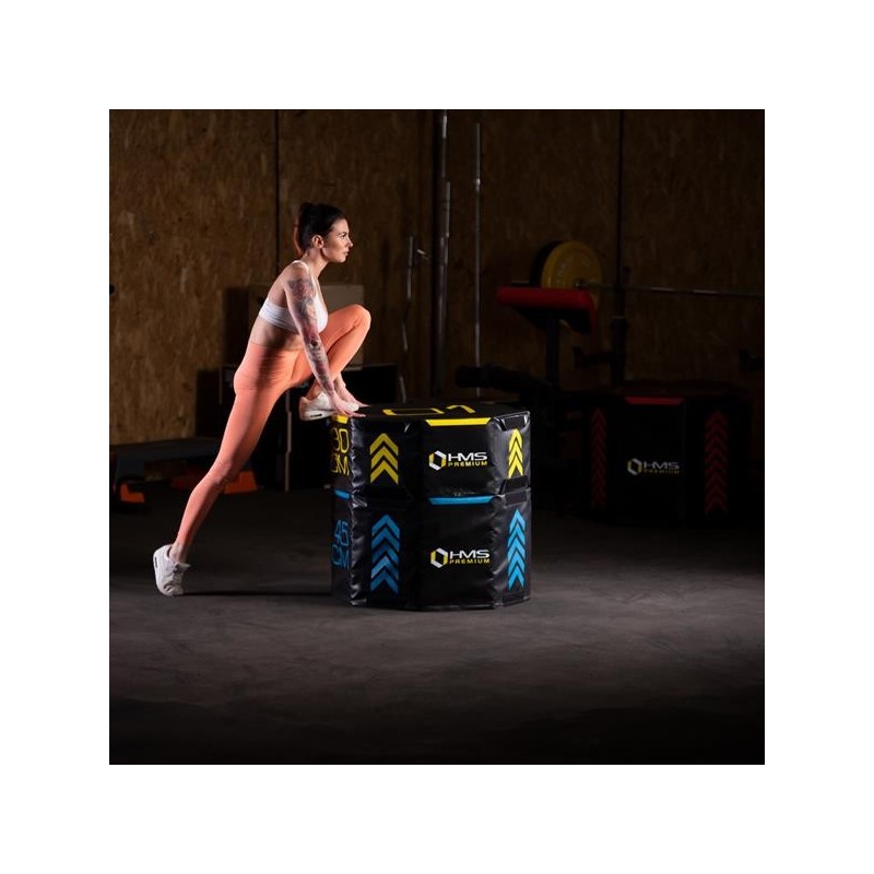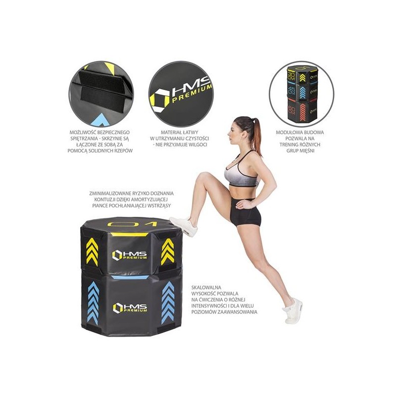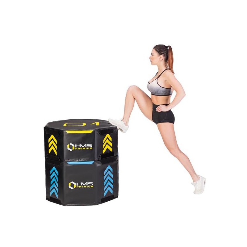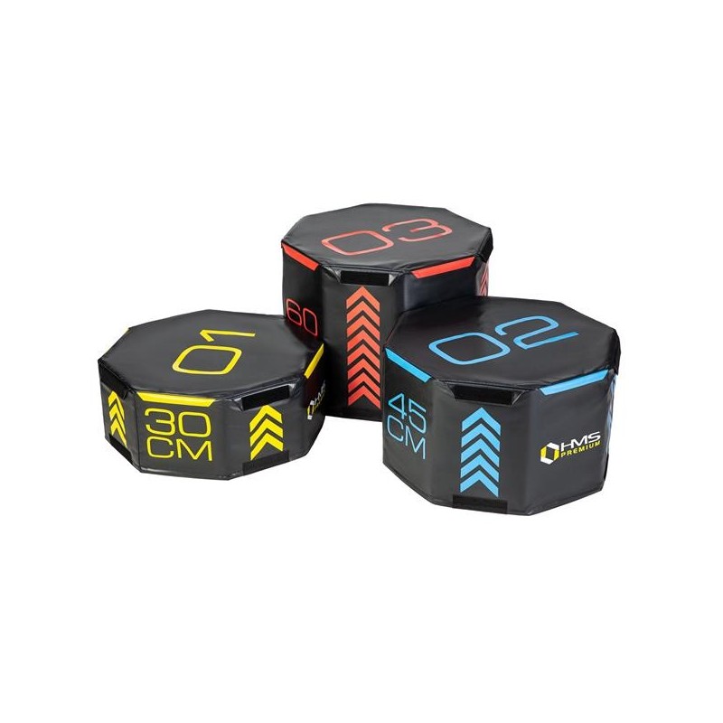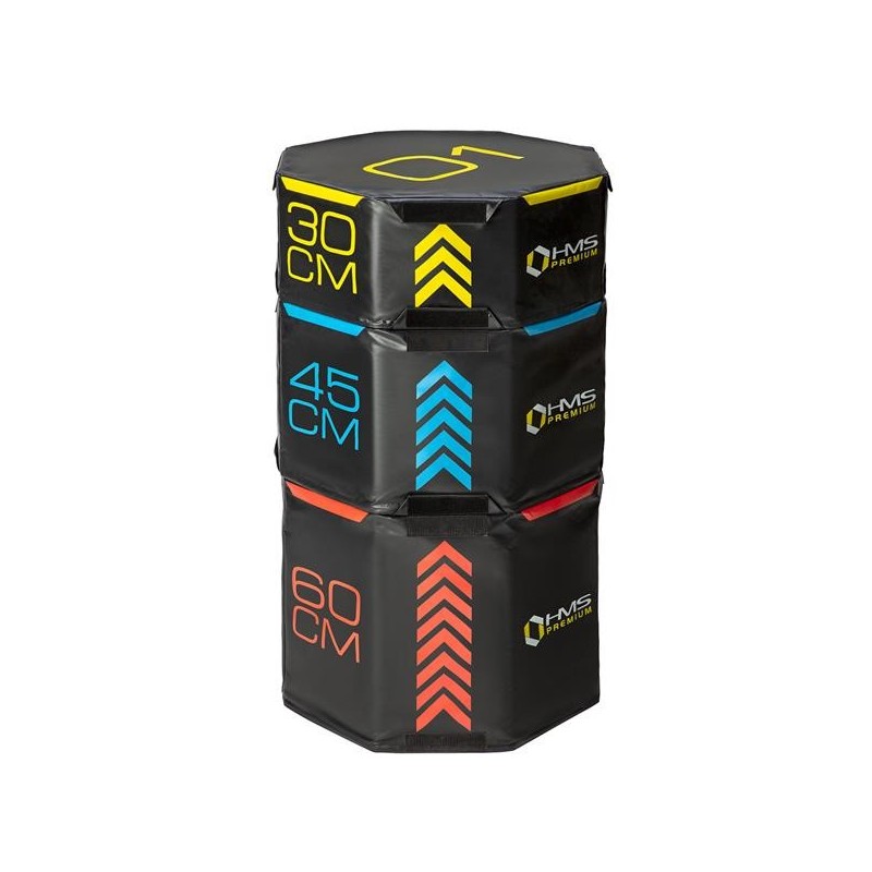 PYOBS01 HMS PREMIUM, to zestaw trzech, miękkich, oktagonalnych skrzyń plyometrycznych, o różnych wymiarach.
