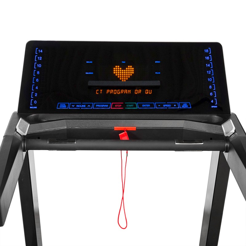 Ergonomiczny panel z wyraźnym wyświetlaczem LED sprawia, że trening jest płynny, a my bez trudu wybierzemy odpowiedni dla siebie program. Do zmiany prędkości i kąta nachylenia, służą joysticki, którymi w prosty i szybki sposób dostosujemy parametry treningu do swoich potrzeb. Trzeba zaznaczyć, że BE1862 została wyposażona w program dostosowany dla ludzi starszych. W tym przypadku nie trzeba się martwić o nagłą zmianę prędkości, czy nadmierne pochylenie bieżni.