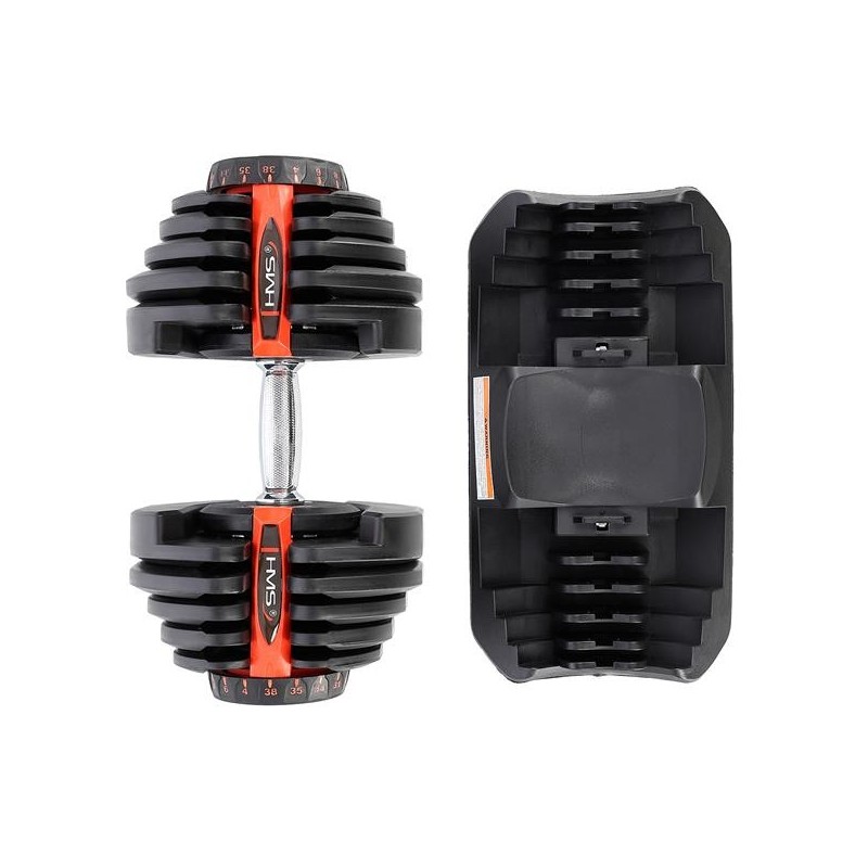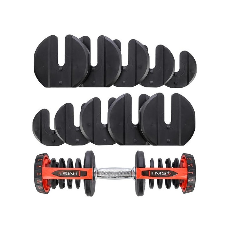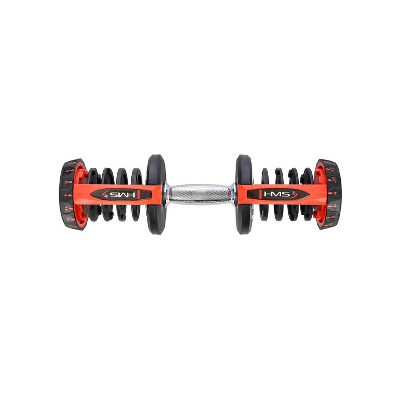 Produkt został wykonany z materiałów najwyższej jakości . Dużym atutem SR80 HMS jest uchwyt sztangielki, o ergonomicznym kształcie, pokryty materiałem antypoślizgowym. Regulowane sztangielki marki HMS stanowią innowacyjne rozwiązanie dla miłośników sportów siłowych - 10 talerzy pozwala na dowolną regulację obciążenia w zależności od potrzeb użytkownika.