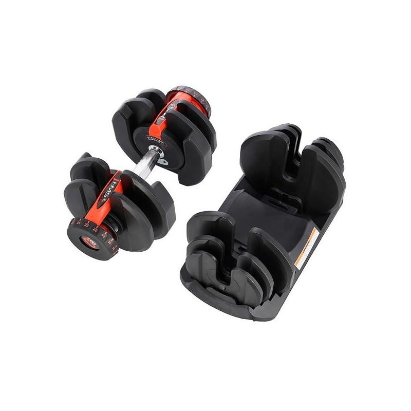 SR80 HMS to regulowana sztangielka . Zestaw zawiera gryf, 10 talerzy oraz podstawkę. Przyrząd jest idealnym rozwiązaniem dla osób ćwiczących w domu, ale z powodzeniem sprawdzi się też na sali treningowej, zastępując cały stojak tradycyjnych hantli.