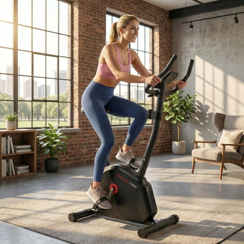 Stabilna konstrukcja urządzenia gwarantuje bezpieczeństwo i komfort ćwiczeń niezależnie od ich intensywności. Nawet przy wyjątkowo dynamicznym treningu rower zachowuje stabilność. Możliwość regulacji siodełka sprawia, że możesz w pełni dopasować je do swojego wzrostu i przyjąć prawidłową, wygodną pozycję w czasie ćwiczeń. Na uchwytach znajdują się sensory pomiaru pulsu, dzięki którym możesz wykonać bardziej wydajny trening z wykorzystaniem stref tętna. Należy pamiętać, że pomiar pulsu za pomocą czujników umieszczonych w produkcie podaje wyniki przybliżone (orientacyjne). Sprzęt nie jest produktem medycznym.