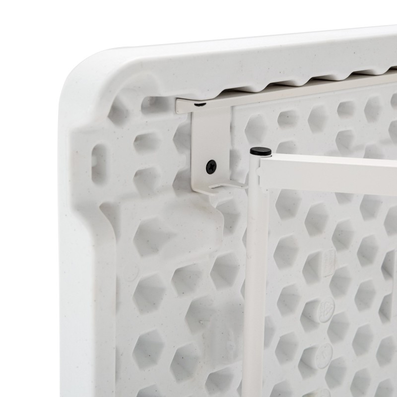 Blat stołu wykonany jest z czystego polietylenu, bez domieszek. Czysty i w 100% nowy (nie ponownie wykorzystywany) polietylen zapewnia doskonałą odporność na wstrząsy, nawet przy niskich temperaturach. Jest nieprzepuszczalny, lekki i elastyczny. Posiada doskonałą odporność na ciepło oraz wytrzymałość na rozciąganie.