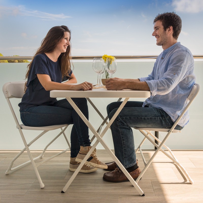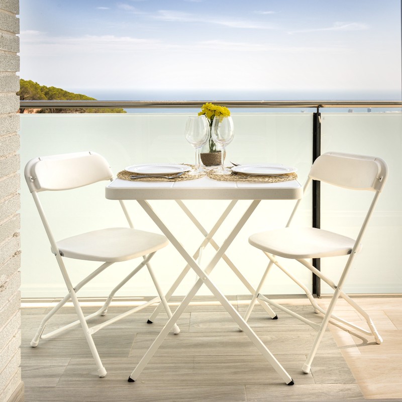 ARUBA to najwyższej jakości zestaw, w skład którego wchodzi składany stół i dwa składane krzesła.